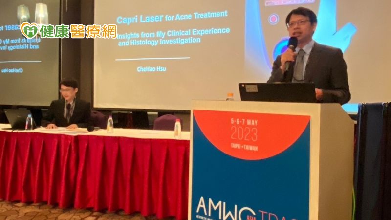 ▲許哲豪院長在今年2023世界美容醫學高峰會亞洲大會及臺灣皮膚科醫學會春季學術研討會分享藍雷射