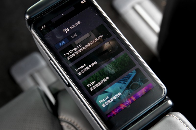 可動式控制面板擺放在兩張中排座椅的扶手位置,透過宛如智慧型手機般的觸控螢幕可輕鬆操控多項功能。