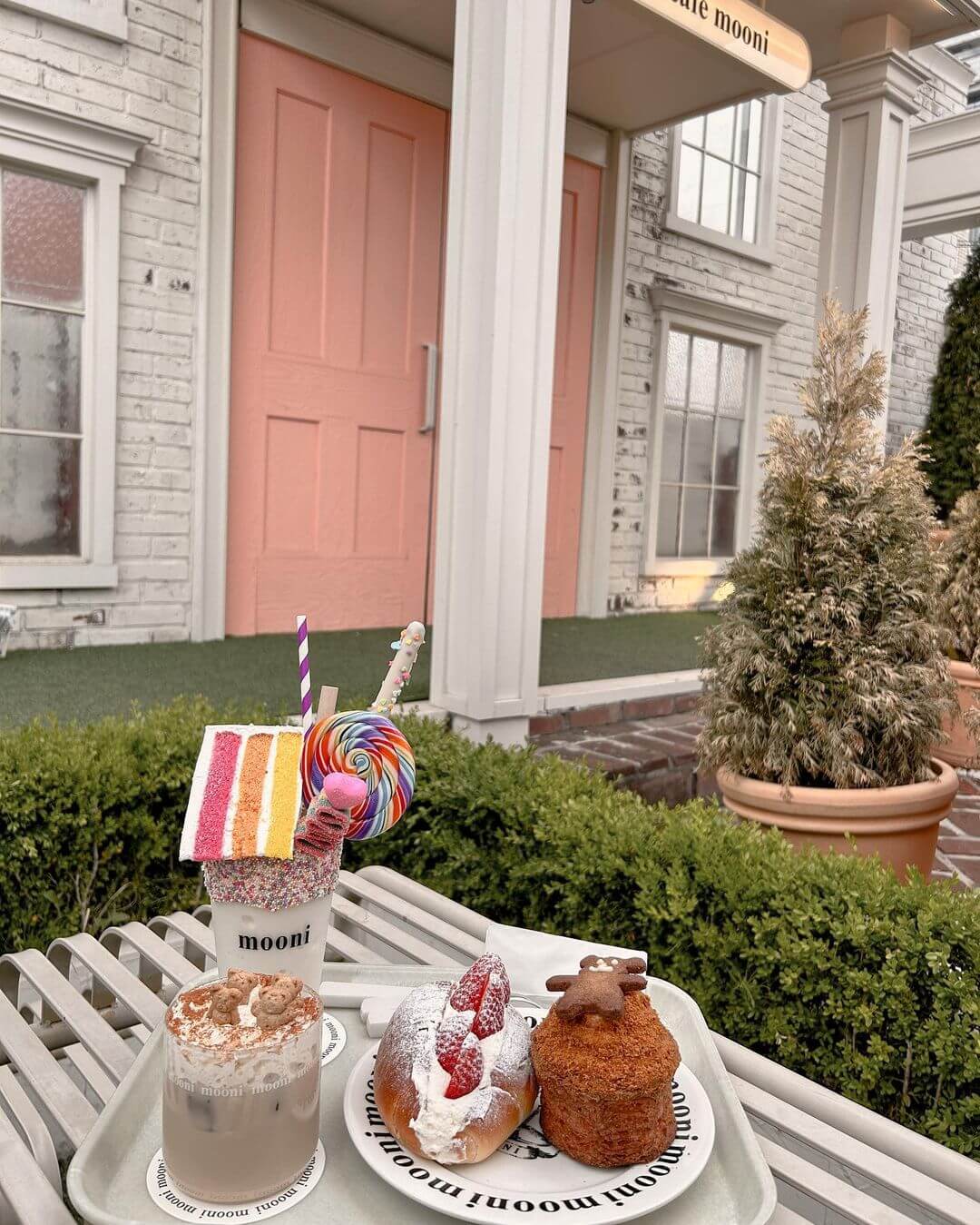 位於狎鷗亭地鐵站附近的Mooni可說是近幾年韓國最夯的咖啡廳之一,一大片庭院配上粉白色的歐風建築,從裡到外都超級好拍,如果是秋季到訪還可以跟頂樓的一大片粉紅亂子草拍照,真的是有夠夢幻!Mooni的菜單品項非常豐富,從各式各樣的麵包、蛋糕到鹹食可頌、三明治都有,飲料也都做得超級可愛,可說是一間非常殺記憶體的網美咖啡廳。