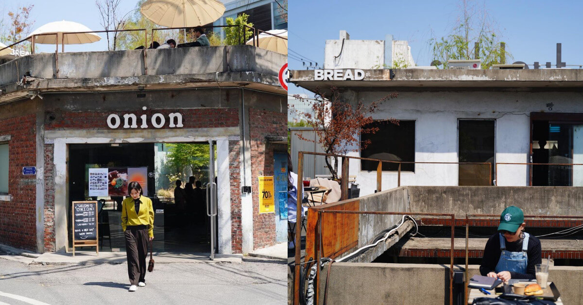 Cafe Onion在首爾總共有三間分店,每一間店都以截然不同的裝潢風格吸引眾多咖啡迷前往。其中這間位於聖水洞的Cafe Onion Seongsu前身是一間金屬工廠,擁有50多年歷史的老宅建築處處充滿著斑駁的痕跡,外露的磚瓦、未上漆的牆壁、凹凸不平的地面,給人一種身處在廢墟的感覺,非常特別。