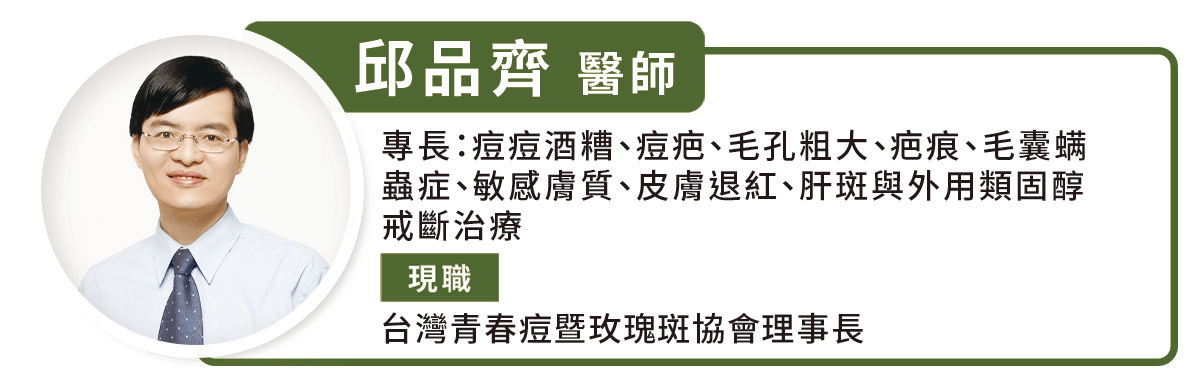 諮詢專家:台灣青春痘暨玫瑰斑協會理事長 邱品齊醫師、台北 / 林口長庚醫院皮膚部主治醫師 王芳穎