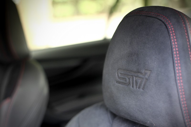 運動化跑車座椅提供不俗的包覆性,頭枕上亦有繡STi字樣。