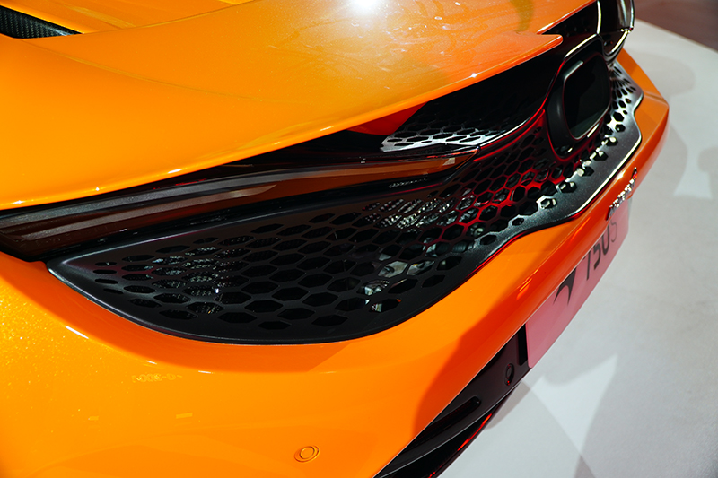 750S在車頭部分更為低伸,並具有較720S延伸的前保桿,銳利狹窄的頭燈進氣口設計,搭配全新側裙進氣口和後輪拱通風口,提升散熱功效和氣流導引。車身後側也依照空力科技修改調整,包括加長的後葉子板,將空氣導流至角度更高且加大的碳纖維主動式尾翼;加大主動式尾翼由McLaren複合材料中心(MCTC)特別為750S打造而成,在高速轉彎時增加下壓力,提高高速煞車時的穩定性並縮短煞車距離,在直線加速時自動降低風阻,運用品牌優化的空氣力學設計提升動態性能。