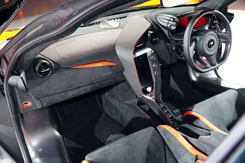 McLaren秉持以駕駛者為導向的設計,全車標準配備較720S大幅升級,以輕量化為核心,標配Turbine 極輕量10輻鍛造銀色輪圈,是McLaren打造有史以來最輕量的輪圈,而座椅更採用原先於720S需列為選配的碳纖維賽車桶椅,競技氛圍環繞其中;內裝標準音響升等為Bowers & Wilkins為750S開發的12支揚聲器,而為更符合使用者情境,實用及安全標準配備較720S更為完整,包含360度環景停車輔助、Apple Carplay® 及僅需4秒即可完成一鍵式車身揚升系統,享受充滿激情的駕馭感受之餘,無須與日常實用性妥協。