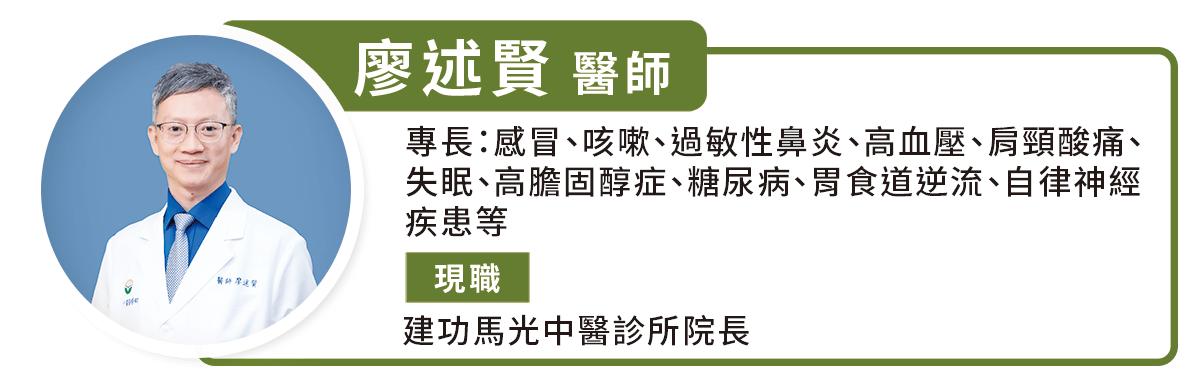 諮詢專家:建功馬光中醫診所院長 廖述賢中醫師