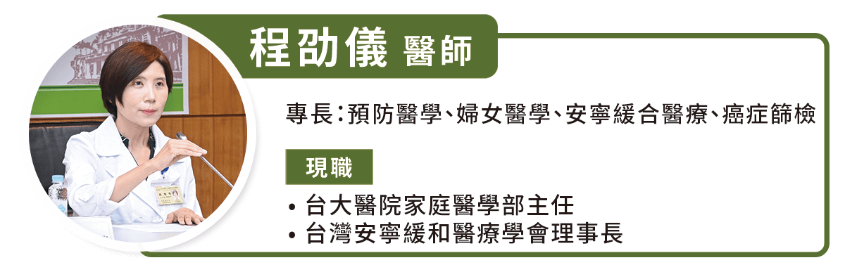 諮詢專家:台大醫院家庭醫學部主任、台灣安寧緩和醫療學會理事長程劭儀
