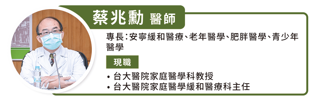 諮詢專家:台大醫院家庭醫學科教授、家庭醫學緩和醫療科主任蔡兆勳