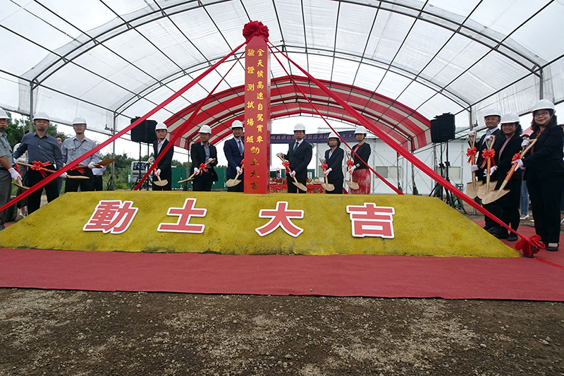 隨著汽車自駕技術日漸普及,台灣產業界積極與國際接軌,開發自駕車相關系統,為提升測試鹼業能量,經濟部補助彰化財團法人車輛研究測試中心(簡稱車輛中心)建設相關測試場地與實驗室;2023年7月31日於舉辦臺首座全天候高速自駕驗測場域動土典禮。