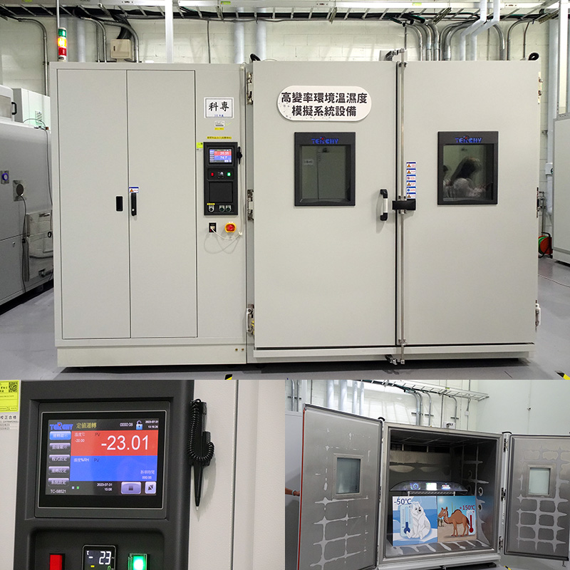 台灣零組件已是國際車廠重要的供應鏈,絕佳的優勢更表現在系統整合及智慧化,然而在車電產品趨勢為系統總成,於測試驗證的缺口為大容量設備、高壓、高電、溫度衝擊等複合環境的設備,經濟部科技專案近年已陸續建置可容納55吋大尺寸的智慧座艙、以及在複合環境下能執行多合一動力總成等大型車電產品之驗測能量,有效縮短開發時程,快速提升台灣在國際上的供應鏈位階。