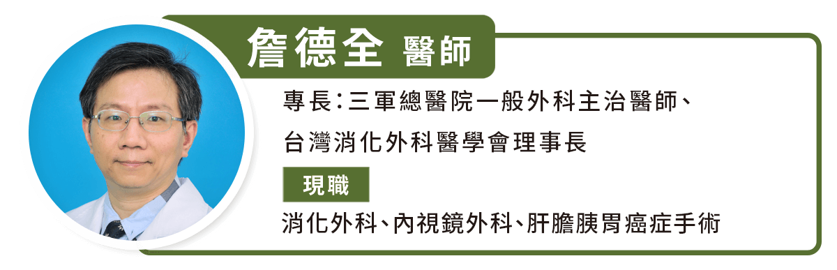 諮詢專家:台灣消化外科醫學會理事長詹德全