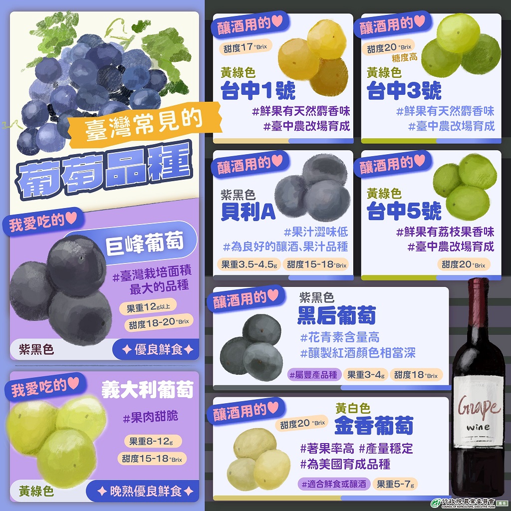 ▲葡萄8大品種各有風味,其中巨峰葡萄高居甜度之冠。(圖/擷取自行政院農委會臉書)