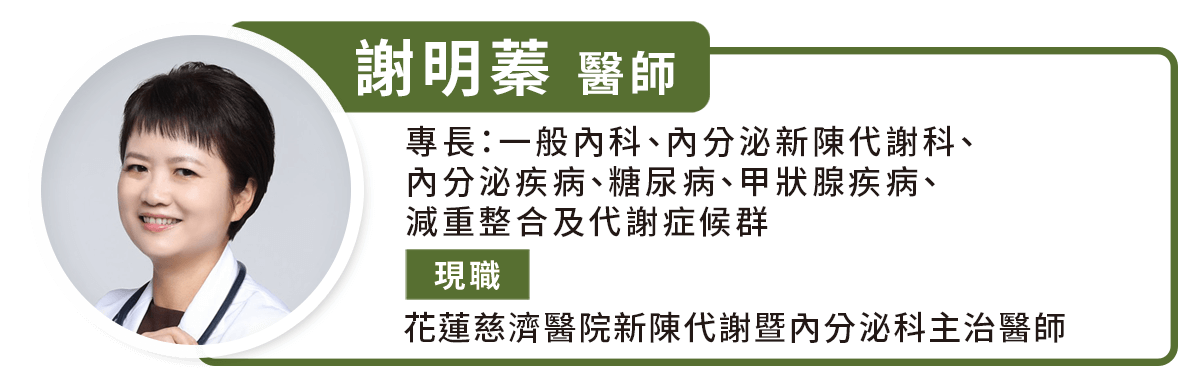 諮詢專家:花蓮慈濟醫院新陳代謝暨內分泌科主治醫師 謝明蓁