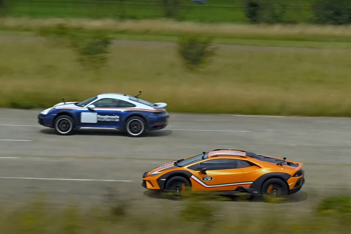 從沒想過有一天跑車也會加高底盤擁有地形能力,沒想到Lamborghini與Porsche就分別帶來Huracan Sterrato與911 Dakar,雖然擁有不俗的地形表現,但終究還是要回到柏油路,因此外媒就安排兩車進行直線加速對決。
