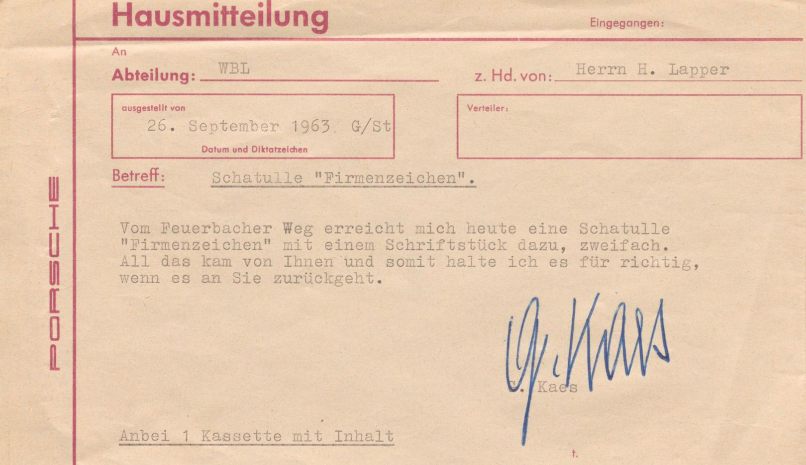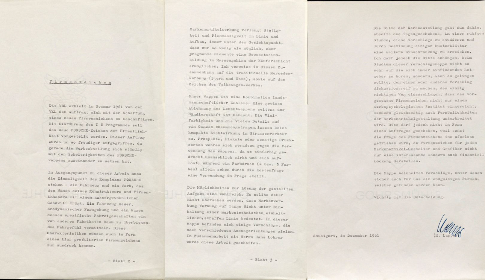 當時 Lohrer 被賦予一項重要任務:打造一個嶄新的廠徽,並預計與代號「T8 計畫」的保時捷 356 後繼車款一同亮相,但最終並未如期推出。