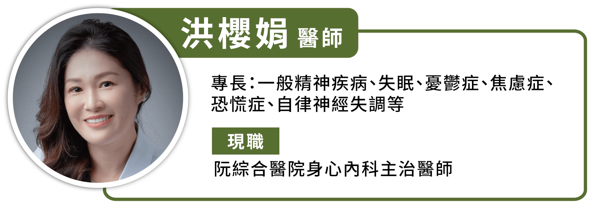 阮綜合醫院身心內科主治醫師洪櫻娟就曾表示,現代人常處於高壓狀態中,可能是生活上掛心的瑣事、工作上莫名的壓力,也有的人個性要求完美,總是繃緊神經,隨時處在備戰狀態,無法放鬆。