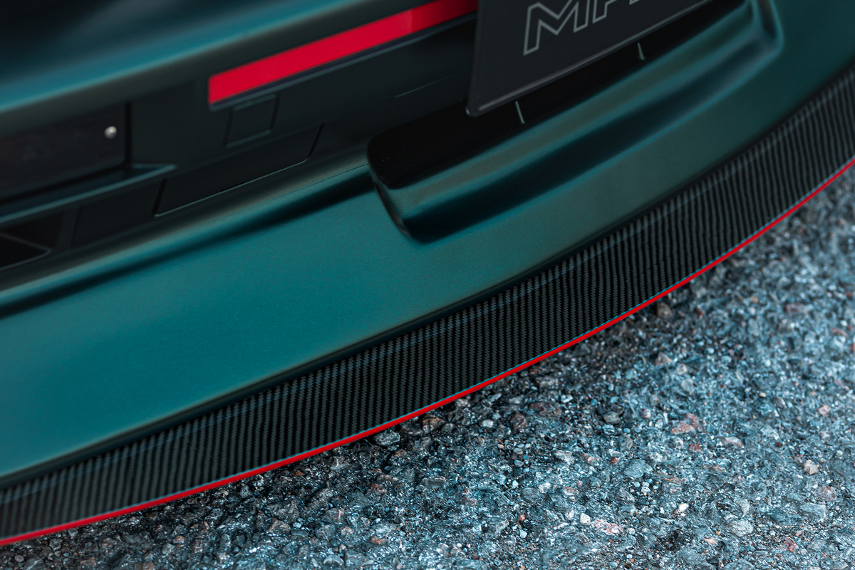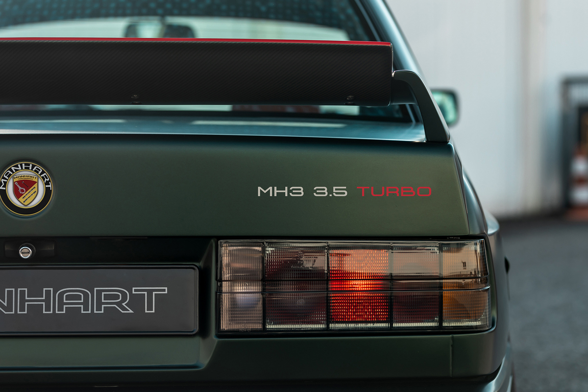 在外觀Manhart替E30 M3配備前後碳纖維擾流飾板、尾翼,輪胎則加大升級至前215/35 R19、後245/30 R19,及換上前330mm碟盤和Brembo四活塞卡鉗與後282mm後碟盤。之所以有如此明顯的升級主要就要對應提升的性能,Manhart捨棄原本的四缸引擎,替E30 M3植入Alpina B7 S Turbo的3.5升直六引擎,另外還額外配置Manhart渦輪、中冷器、排氣系統,進而帶來405hp最大馬力,峰值扭力也有66.3kgm,此外為提升操控表現Manhart於懸吊系統也更換成H&R,當然在車高方面也來得更加低趴。