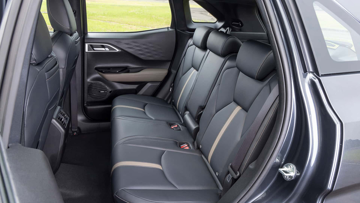 Xforce的軸距長度為2650mm,Mitsubishi表示其具有同級車最寬敞的車內空間,後座椅背具40:20:40分離翻倒機能,便於空間利用,Xforce車內還有多達21個可放置600ml瓶裝飲料的置杯架,便利性十足,水平排列的中控台與兩側車門連成一氣,創造出開闊感,並首次應用混紡織品來包覆中控台不僅提升質感,還具耐用耐髒的特性,儀錶板採8吋數位液晶螢幕,搭配12.3吋無中央多功能顯示幕,提供完整資訊,也迎合了時下的數位化流行,並同樣具有智慧手機連接功能,前排和後排座位均設有 USB Type-A 和 Type-C連接埠,讓每個座位的乘客都可以為手機充電,更特別的是,Xforce 首次配備了與 Yamaha Corporation 合作開發的 Dynamic Sound Yamaha Premium,配有8具揚聲器,營造更好的車內音樂聆聽效果。