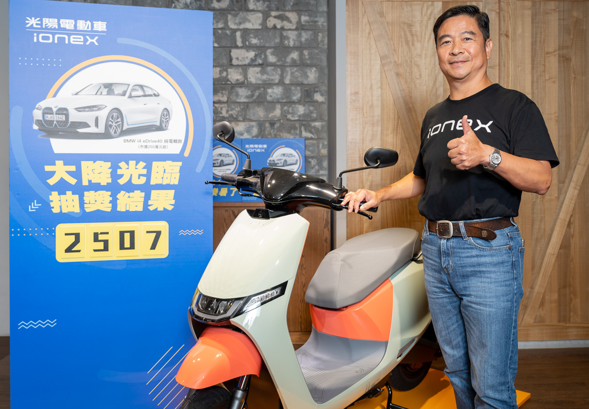 Ionex 光陽電動車自 3 月推出「大降光臨」購車就抽 BMW 純電轎跑活動也於 7 月底正式落幕,活動期間共吸引超過 5,000 位消費者熱情參與,光捷營業副總謝俊弘抽出純電轎跑得獎者,為活動畫下完美句點。