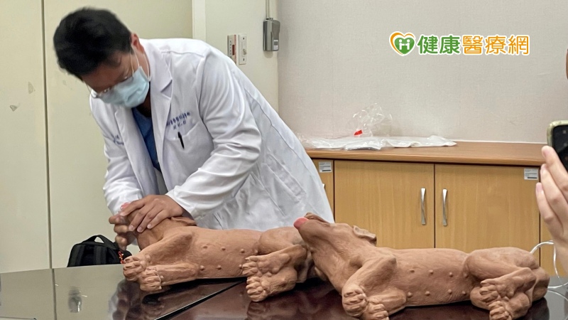 ▲徐嘉鴻醫師用教具安娜狗示範寵物CPR。(圖/新北市政府動物保護防疫處提供)