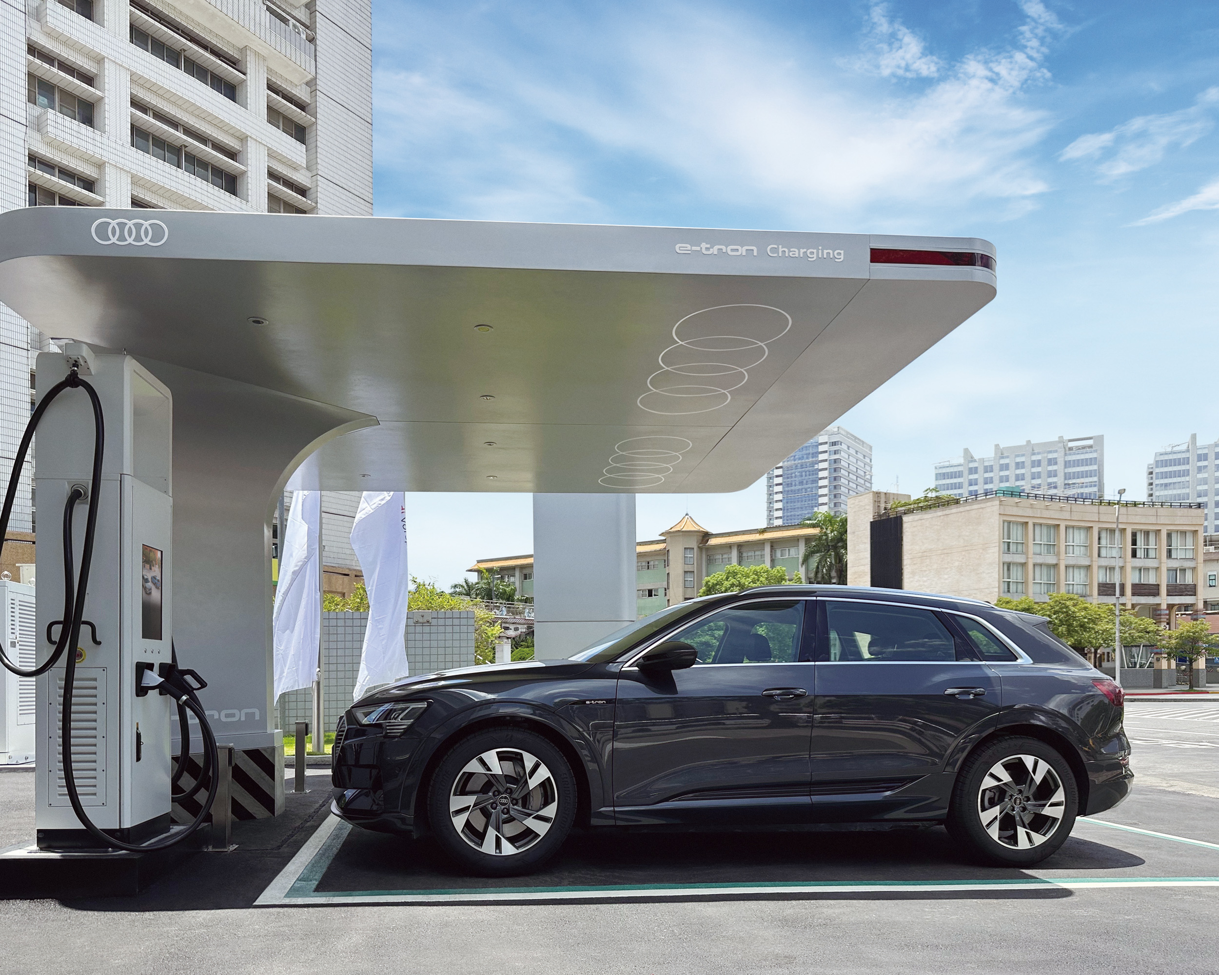 在通路服務部分亦帶來進程新訊,台灣奧迪與經銷商夥伴合力優化充電體驗,新升級Audi 極速充電站率先於Audi 南港展示中心正式啟用,設有Audi Charging Shelter永續充電站,結合品牌尾燈造型與簡約設計而成,同時頂部搭載高效太陽能轉換系統,可儲存電能供應頂棚夜間燈光,達到裝置能源自給自足的永續狀態,並兼顧雨遮功用。此新式設計未來將陸續更新至全台Audi 極速充電站點,給予純電車主更佳的充電環境。