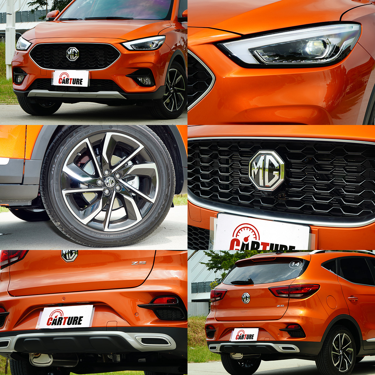 車身尺碼為4,323x1,809x1,653mm的ZS,在外型上大致延續ˋHS的基本流線輪廓,並以圓潤的線條切畫車身,沒有過於銳利的銳角與繁複鈑件刻線,簡潔中展現都會感,六角形黑色格柵式水箱護罩配上展翼造型頭燈,內含原廠稱為鑽石之翼的LED日行燈,具畫龍點睛效果,而頭燈下方亦配有前霧燈,並具有同級車僅見的轉向輔助功能,在車輛轉向時亮起,強化頭燈不及的盲區光線。而車尾整體設計有如扁平化的車頭,尾燈與後霧燈造型都與頭燈、前霧燈相仿,下方後保桿採用融合排氣尾飾管的設計,並鍍鉻飾件點綴,提升質感。此外,17吋銀黑雙色的切削造型鋁圈,則增添了一分個性感,車頂也配上了能承重75kg的霧銀車頂架,兼具美觀與實用性,都是同級車中少見的設計。