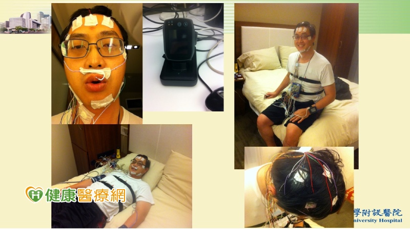 ▲傳統睡眠多項生理功能檢查(PSG)需要整晚配戴多種生理感測器,患者被綁成「電線人」緊張無法入眠,導致檢測可能失準。(圖/中醫大附醫提供)