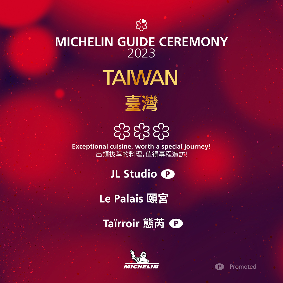 自從 2018 年在臺灣推出《米其林指南》以來,首次有 2 家餐廳晉升三星:臺北呈現時尚臺灣菜的態芮,以及臺中呈現時尚新加坡菜的 JL Studio。這也是全球首次有臺灣料理及新加坡料理的餐廳獲得米其林指南最高的三星肯定。連同臺北的頤宮,臺灣現在共有 3 家三星餐廳。