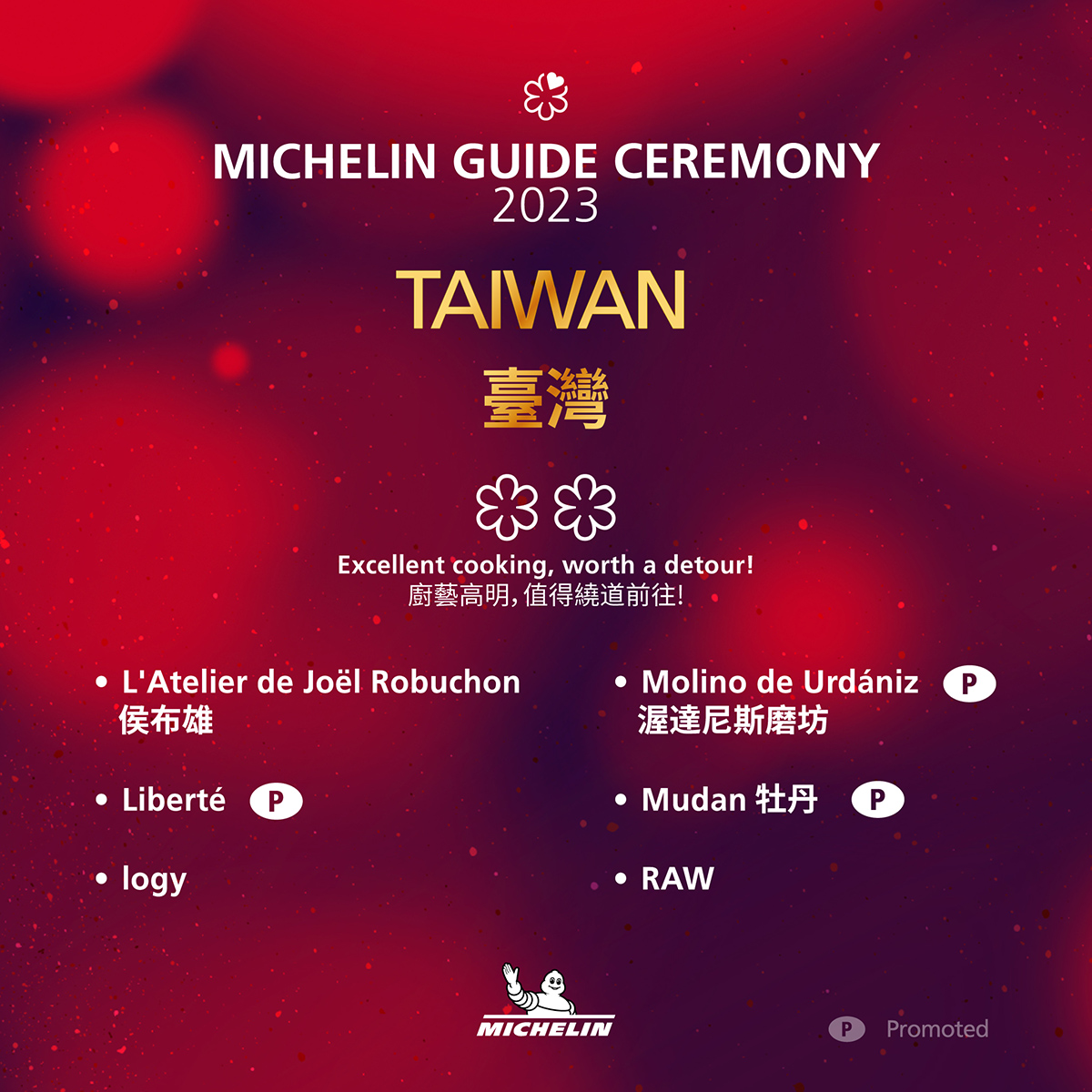 2023 年《臺灣米其林指南》於8月31日正式公布獲得星級肯定餐廳名單,共有 44 家餐廳獲得星級肯定!