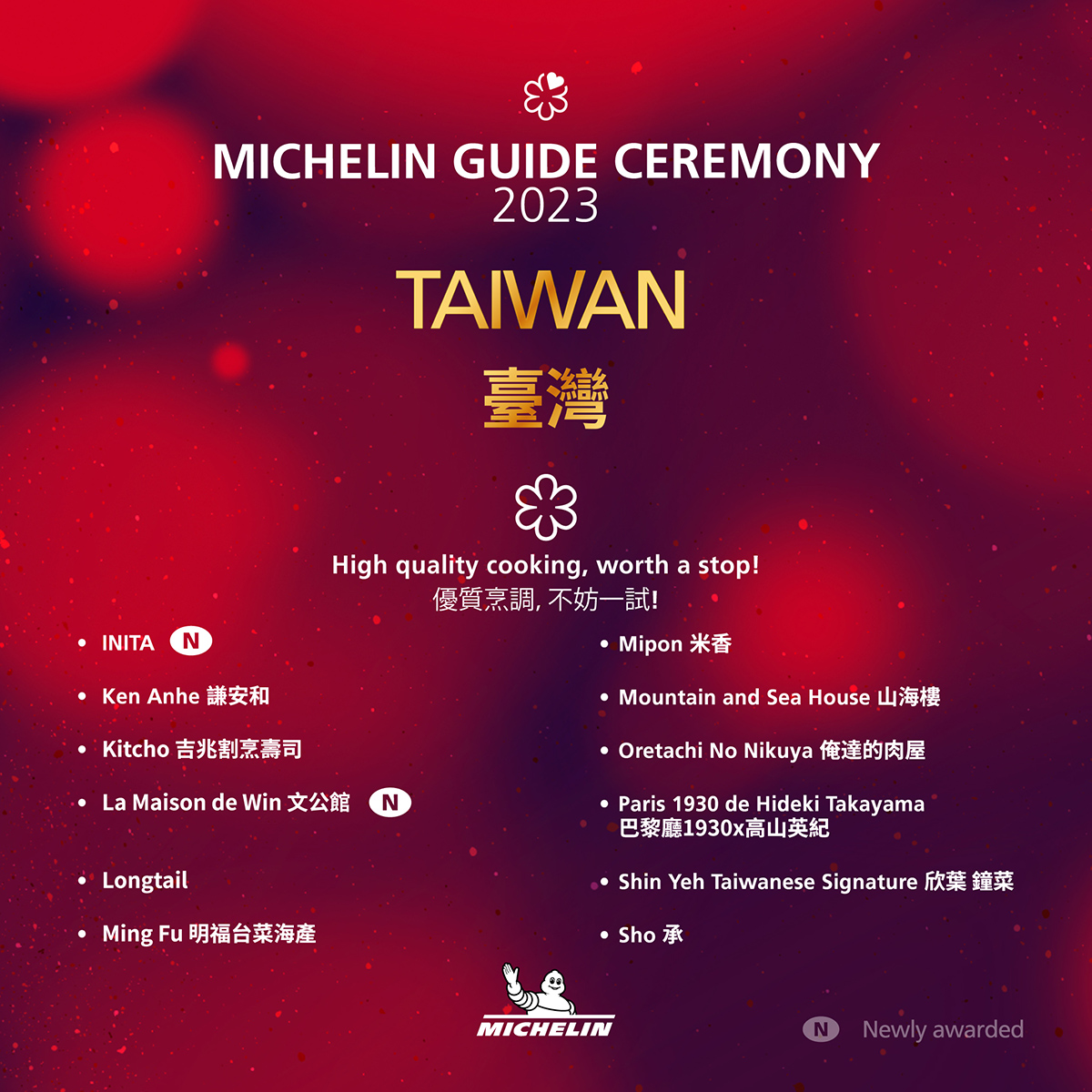 米其林很開心公布《臺灣米其林指南 2023》的完整名單。