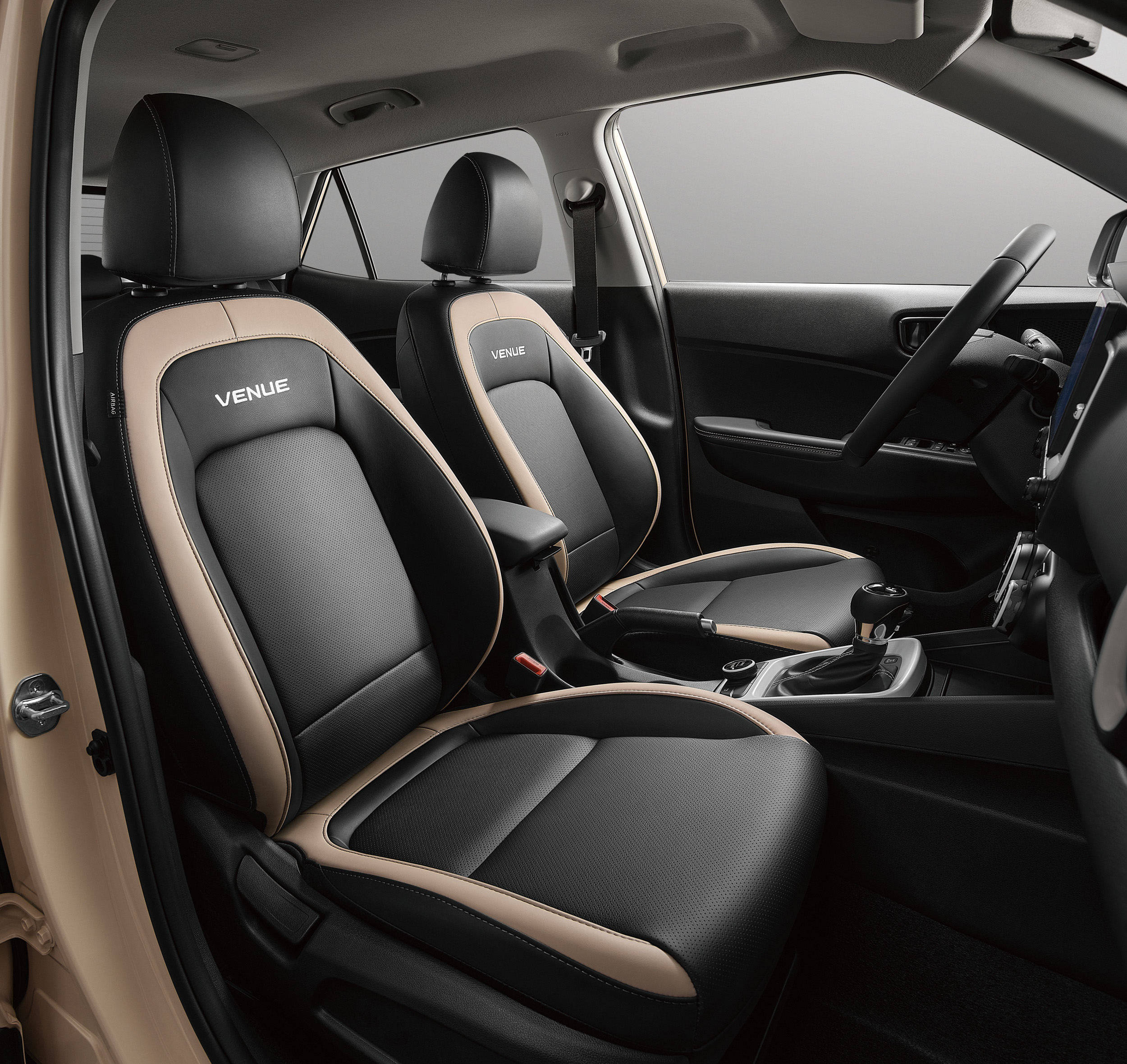 淺棕色的主調為車身帶來了一份自然與溫馨感,細節處再用深咖點綴,營造出極具層次感的視覺效果,而位於C柱上的V字飾徽以及車尾的Espresso專屬銘版,不僅增添了獨特的品牌辨識度,還賦予了VENUE「義式咖」一份精緻的藝術感。內裝設計細節同樣不馬虎,採用Espresso專屬雙色座椅,淺棕色外圈皮革提升座椅質感,灰色車縫線巧妙地點綴在座椅和內飾之間,營造出一種時尚且協調的視覺效果。