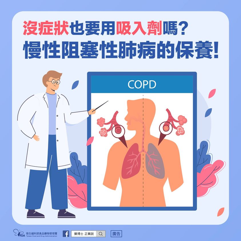 【健康醫療網/記者鄭宜芬報導】根據衛生福利部資料,全球每10秒鐘就有一個人死於慢性阻塞性肺病(COPD),台灣一年更有超過5千人因而死亡。不過患者常疑惑,沒有症狀也要吸嗎?乾粉吸入劑吸不動該怎麼辦?為何吸完要漱口?食藥署在臉書粉絲團「藥博士 正藥說」一次說清楚。