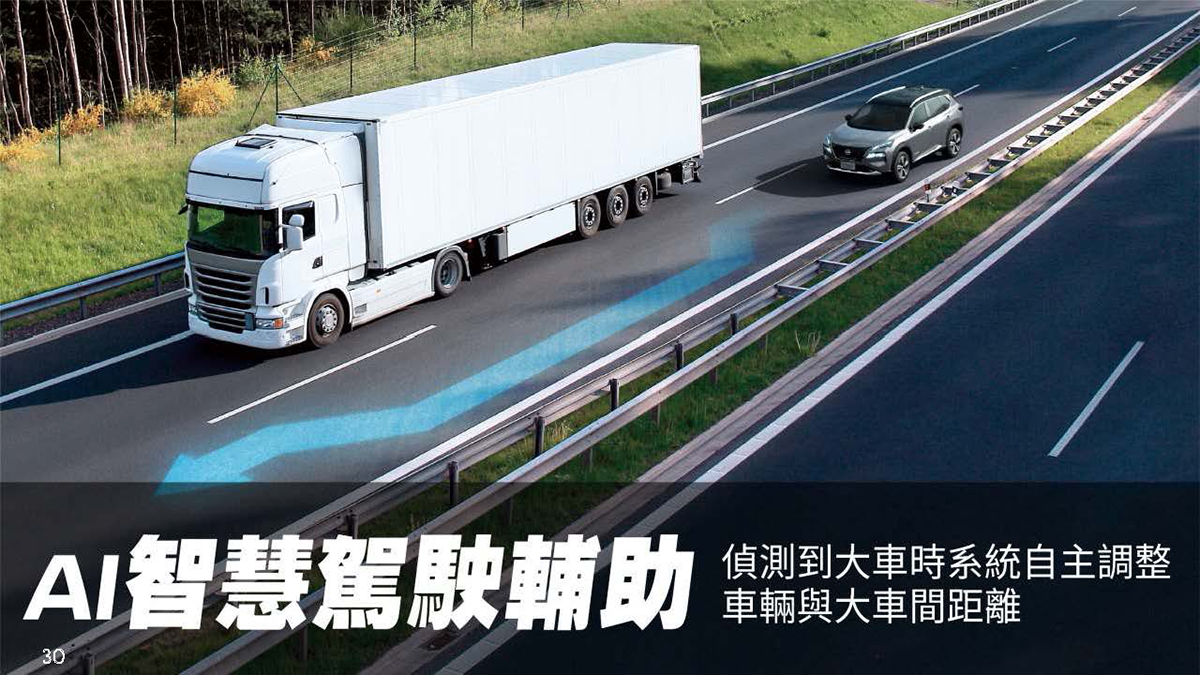 安全面包含ICC智慧型全速域定速控制系統、TJP交通壅堵輔助系統及LKA車道維持系統等科技的ProPILOT 智行安全系統亦為標準配備,另還有獨家的AI 智能駕駛輔助系統、PFCW超視距車輛追撞警示系統與RR-AEB後方緊急煞車系統,其中AI 智能駕駛輔助系統,在搭配ProPILOT 智行安全系統時,提供更精準地轉向與動力控制,且在遇到隔壁車道為大型車輛時,會微微地調整本車在車道中的位置移略增加與大型車間距,做到些許迴避效果,在細微間增加安全性。