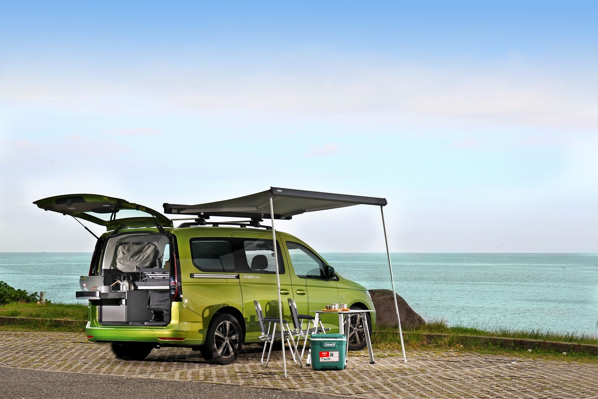 與一般Caddy外觀最大差異就是Caddy California配備Thule伸縮式車側遮陽棚。