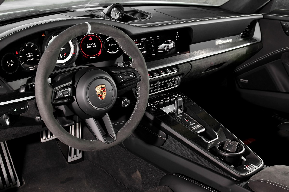 方向盤旋鈕可快速切換駕駛模式。 以往911只能在公路、山路或賽道行駛,但911 Dakar不僅沒犧牲任何911原有的操駕身手,甚至還多了其它911去不了的越野地能力,就算沒有要去越野,但開著911 Dakar載著設備去野外露營,光想這畫面就覺得很夢幻。