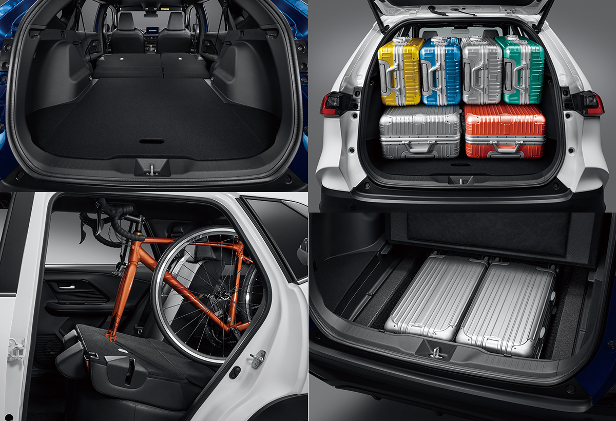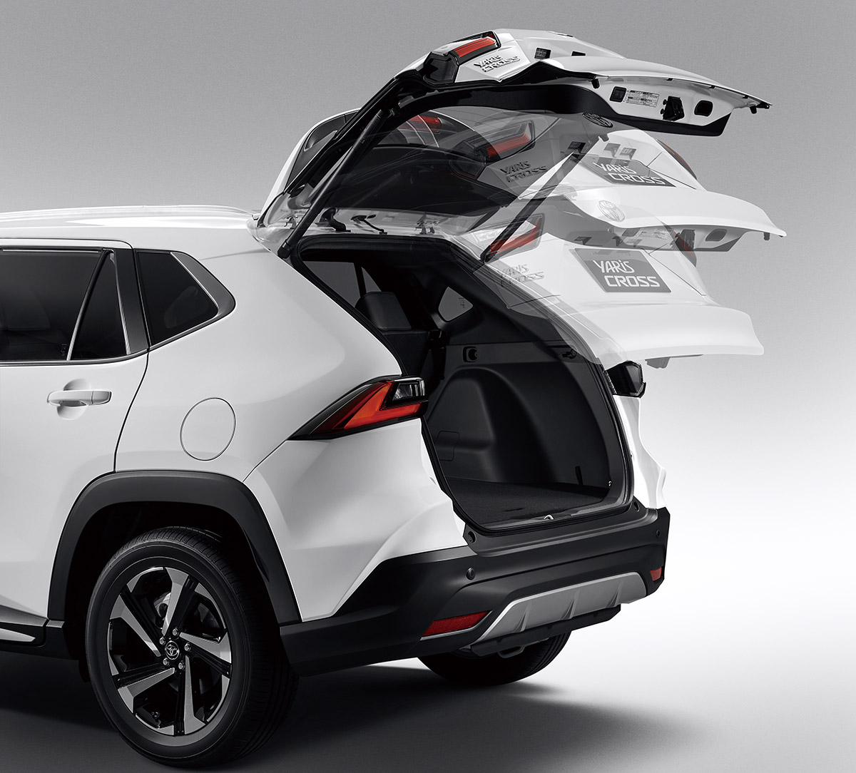 Yaris Cross具有方正的458L超大行李廂空間,而行李廂下層置物空間還可容納2個20吋行李廂註3,再加上高度兩段式可調隔板、與足踢感應式電動尾門(潮玩版),讓消費者能夠自在運用充足的置物機能。