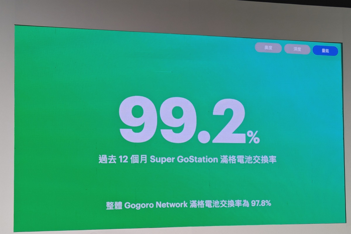 根據 Gogoro Network 最新統計資料,超過 130 萬顆智慧電池每天服務 Gogoro 與 PBGN 車主、以及 GoShare 用戶,其中 64% 為第三代電池,還以每月平均增加 12,000 顆全新電池的速度,不斷擴充服務量能。而單站擁有超過 120 個電池槽的 Super GoStation,量能是一般 GoStation 的四倍,平均每月就產生近 200 萬次電池交換,滿格電池交換率達 99.2%,以 3.5% 的站數比例肩負了 12.7% 的 Gogoro Network 能源網路交換量。
