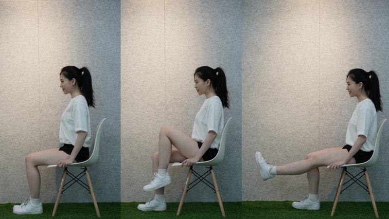 - 坐姿屈膝抬腿: