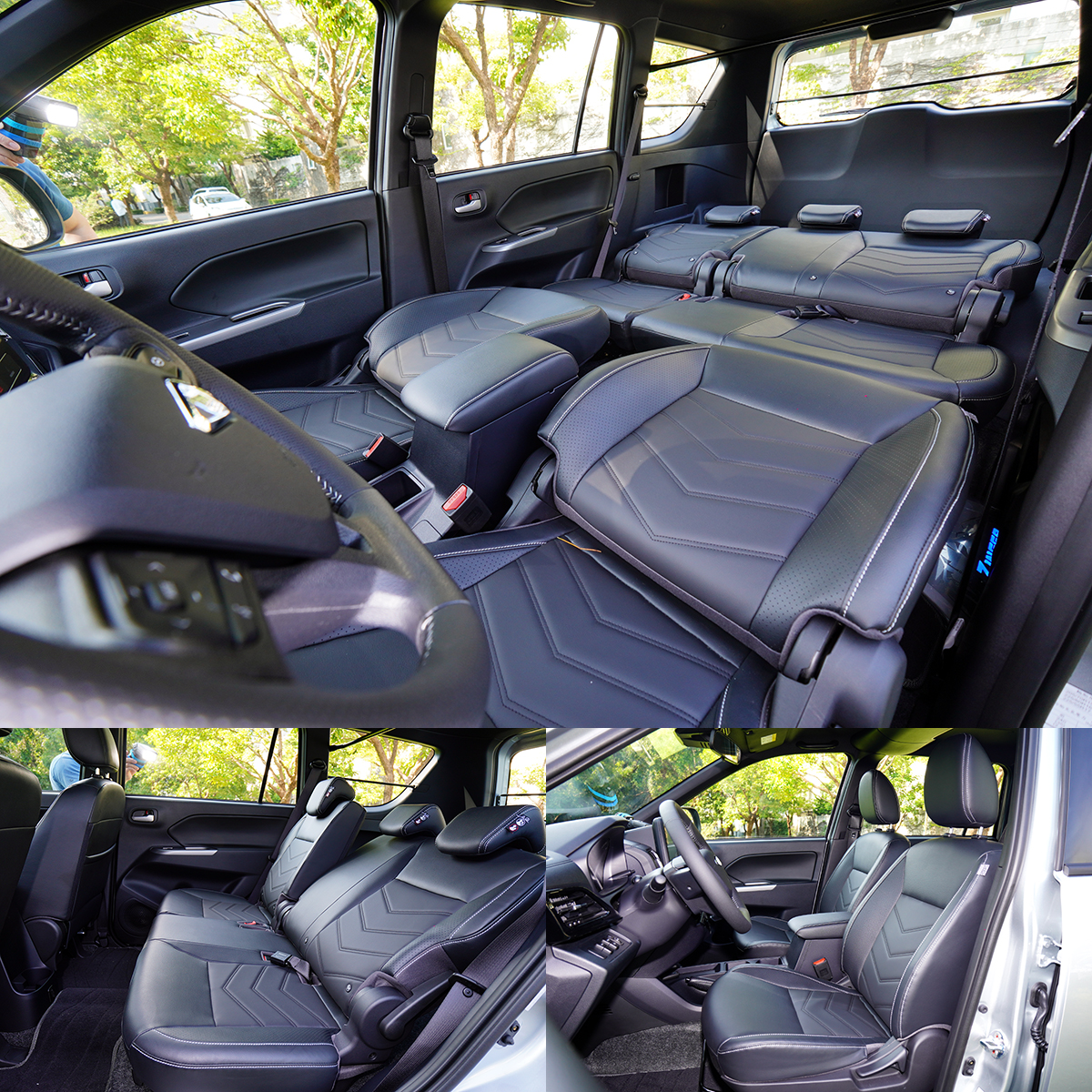 座艙中,具有車高優勢的Zinger,再整體寬敞度絕對優於多數中型SUV,第二排座椅具配195mm前後13段滑移功能搭配4/6向前翻起與椅背傾倒翻折功能,提供空間利用彈性與乘坐調整機能,同時維持傳統,可將後座椅背全數向後攤平,搭配也可以被翻坪的前座,創造出人員可躺平的車床空間,若將第二排座椅向前翻起後,可騰出最大達2,015L之容積。而本次Zinger改款還增加了七人座車型,增加人員運載機能,提供有七人座需求的預算型消費者新選擇。