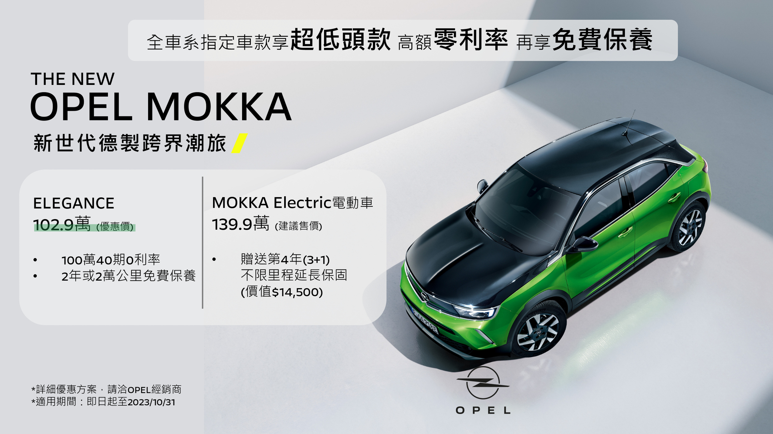- MOKKA ELECTRIC ELEGANCE享 3+1 年不限里程延長保固優惠。