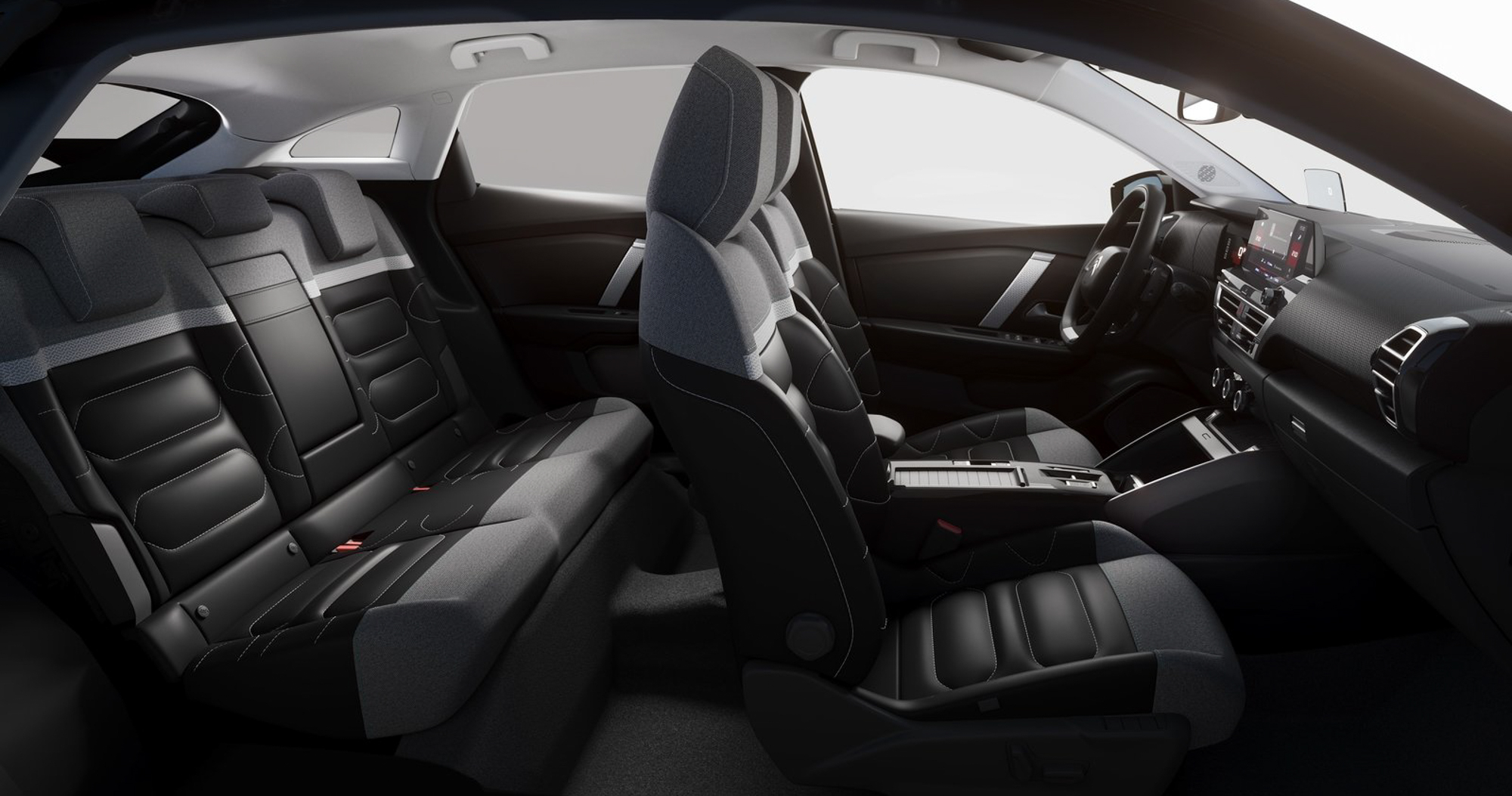 CITROËN C4 & Ë-C4現代化車艙氛圍,大面積切削風格且對稱式的中控台,以5.5吋無邊框高解析數位儀錶,極簡風格易於資訊閱讀,且儀錶側邊設置溫和的間接式氛圍照明;前衛造型的皮革包覆多功能方向盤,於盤幅左側集成駕駛輔助控制功能,右側則為多媒體控制按鍵。CITROËN C4 & Ë-C4全車系標配10吋全彩觸控螢幕整合音響與通資系統,10吋HD全彩觸控螢幕採超薄無邊框設計及亮黑色鏡面處理,結合人字紋飾鍍鉻調整輪,以法國原裝繁體中文操作介面整合通訊、影音娛樂及行車資訊等功能,搭載TomTom導航圖資,提供3年OTA線上圖資更新服務;同時,結合MIRROR SCREEN鏡像系統,支援無線 / 有線雙模式連結智慧型手機Android AutoTM或Apple CarPlay®,並可透過10吋HD全彩觸控螢幕操控Apple地圖或Google地圖衛星導航,抑或是聆聽Apple Music、Podcast或Spotify音樂,以及撥打電話等功能。CITROËN C4 & Ë-C4行李廂容積380公升,透過後座椅背全傾功能,可大幅提升至1,250公升;同時,全車多處貼心儲物空間,展現實用高機能。