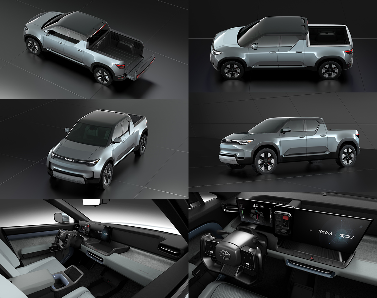 在此之前,就有傳言Toyota有意推出中型皮卡,EPU的亮相即可更明顯的輪廓,可視為新一代皮卡概念車;其同樣採單體車身結構,車長僅5,070mm,同葬採純電動力,座艙為傳統雙排座椅設計,而寬闊的貨斗具備多元的使用機能。