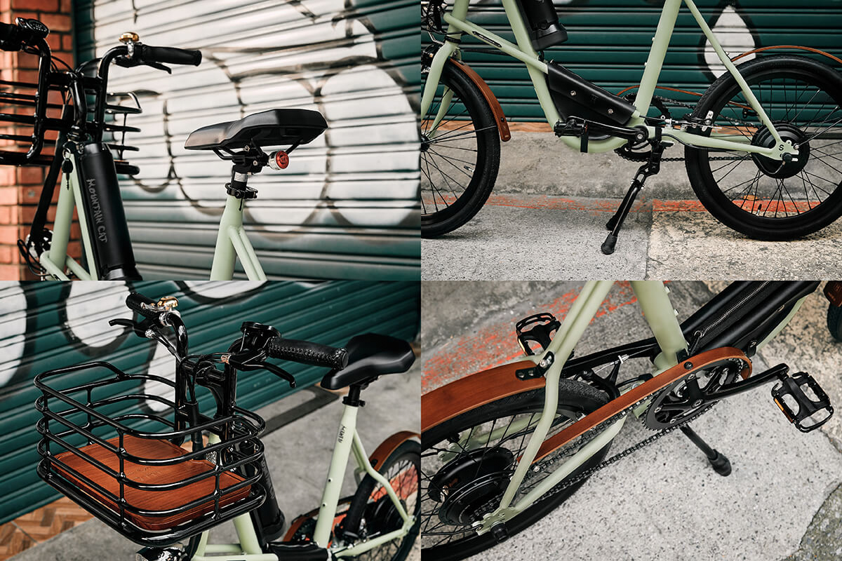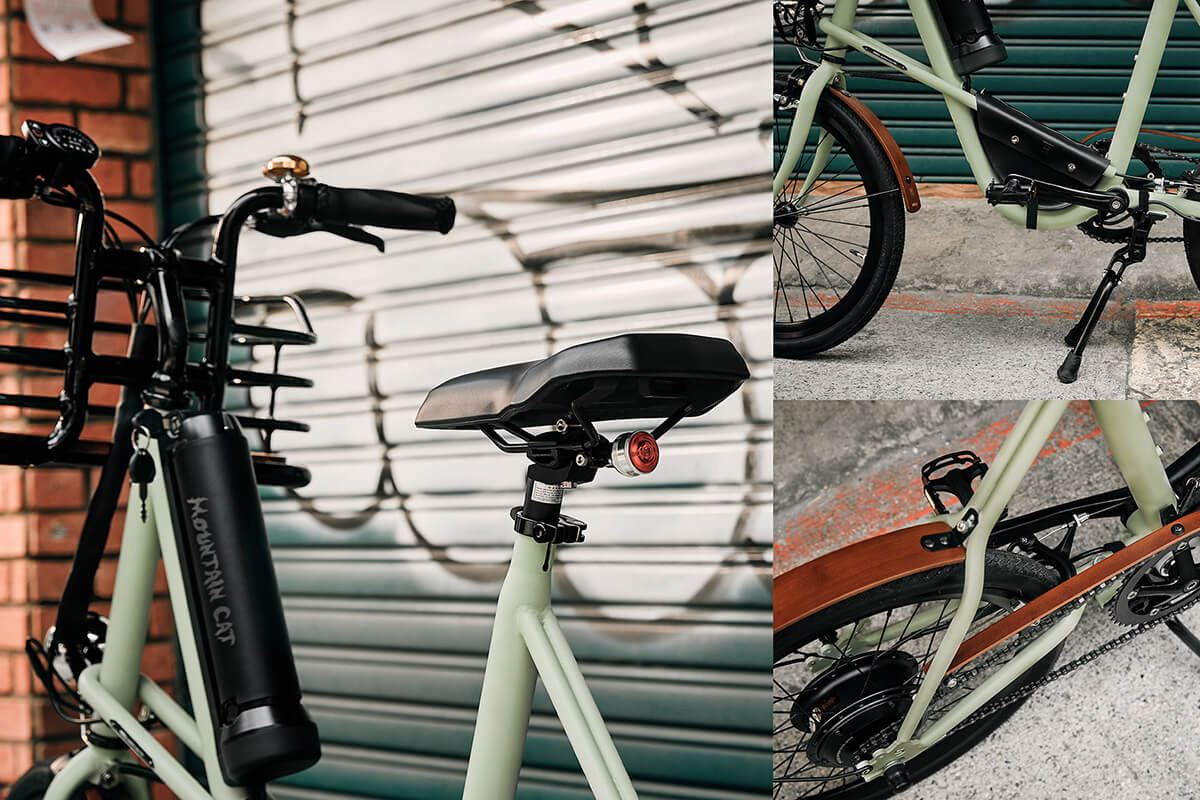 SEic miniu輕電車作為簡易好上手的日常城市電輔車,結合現代科技與工藝美學,簡約俐落的外觀,符合人體工學的U型低跨點的設計,讓所有騎乘者都能平穩地上下車,車架設計上了安裝一顆高效鋰電池,搭配五段的電助力變速系統,讓任何人都可以輕鬆騎乘、在城市間穿梭自如。SEic miniu全新Mountain Cat系列,以搖滾山貓IP打造鮮明風格,為復古工藝添加潮流風尚,製作山貓銘牌、水洗標,更以匠藝巧手打造木製泥除及鍊蓋組,搭配LED復古前燈,大幅提升整體質感及精緻度,展現工藝之最;再推出四款風格限定色:石英灰、墨夜藍、草芥綠、杏駝棕,讓車友可依照個人喜好自由搭配,挑選車架顏色、配備,打造出一台專屬個人特色的絕美單車。