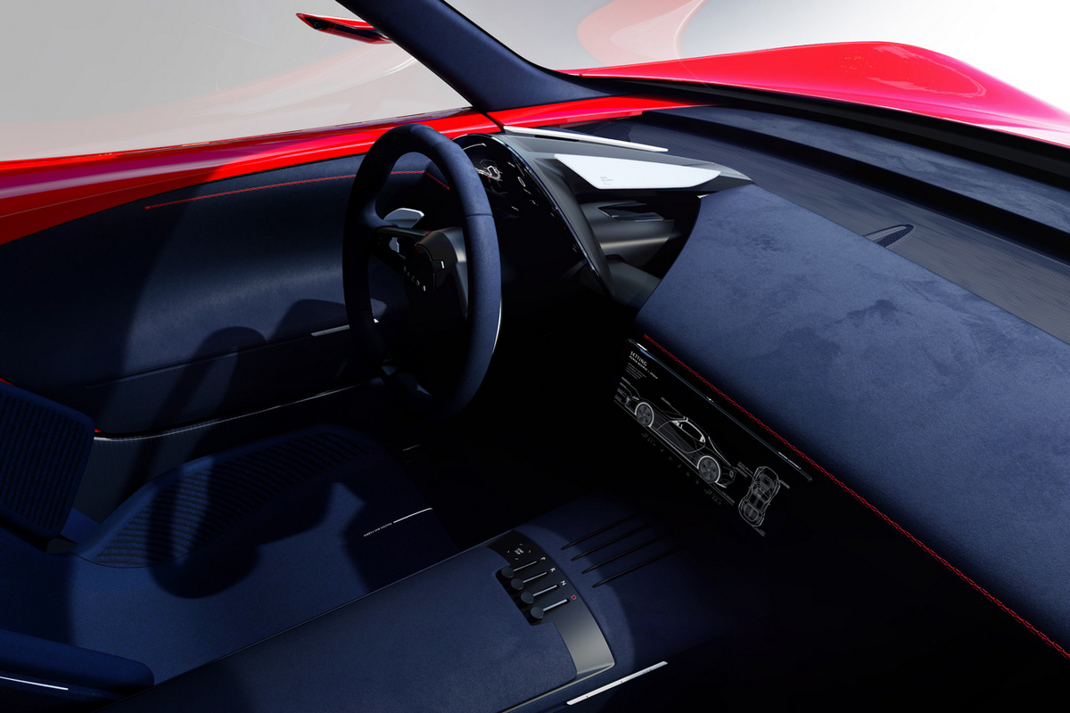 Mazda Iconic SP讓眾人好奇的莫過於動力系統,Mazda Iconic SP搭載Rotary-EV系統,這套系統已不是新鮮貨,先前MX-30 e-Skyactiv R-EV就是將轉子引擎作為發電機使用,而Mazda Iconic SP為符合跑車特性則配置雙Rotary-EV,不僅可使用氫氣、再生燃料等能源也具備V2L功能,動力輸出370hp最大馬力,只不過有配置電池模組因此車重來到1,450公斤,但50:50 配重仍兼顧操駕樂趣。