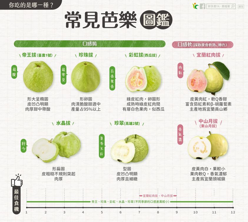 ▲台灣常見的芭樂品種可依口感脆/軟程度分為兩大類。(圖/擷取自鮮享農YA - 農糧署)