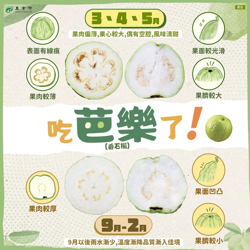 ▲春秋兩季芭樂口感不同。(圖/擷取自農業部臉書)