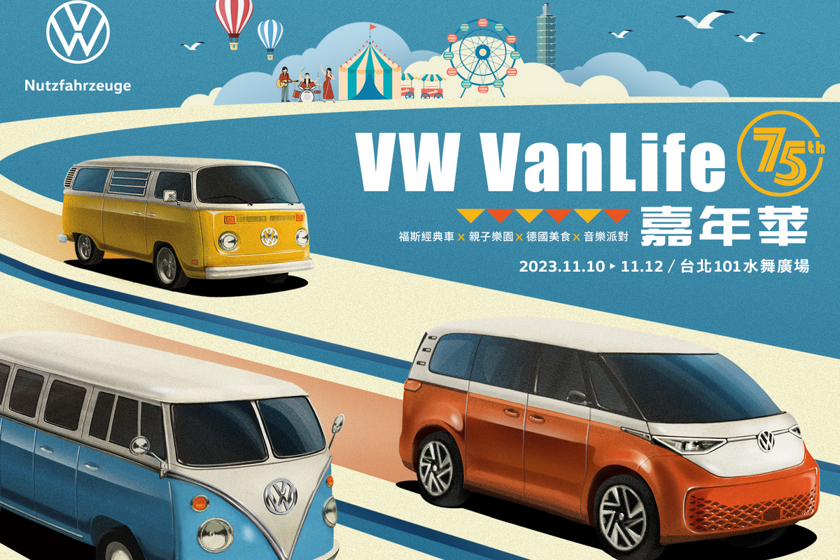 台灣福斯商旅年度盛事-「VW VanLife 嘉年華」於今日(11/10)盛大開跑!而備受全球車迷矚目的ID.Buzz,也在活動期間內連續展出,讓參與民眾皆能一飽眼福,近距離欣賞到純電休旅ID.Buzz的迷人風采。由純電休旅ID.Buzz領軍,引領旗下T1~全新Multivan等經典車款陣容連袂現身,同時,更聚集各世代經典車款以車隊遊行方式繞行台北著名地標,為75週年慶典再創VanLife風潮;此外,活動現場更準備多樣精彩豐富的活動內容,包含【經典車款展示區】、【VanLife專屬展示區】、【德國美食區】、【親子互動體驗區】、【創意手作選物區】、【ID.Buzz VR虛擬實境體驗區】,以及台灣首輛由T3打造的【行動式拍貼巴士】。週末假日更特別邀請實力派歌手【?te壞特】於11/11(六)晚間熱力開唱,以及11/12接力登場的全方位藝人【馬念先】,陪您high翻台北不夜城。