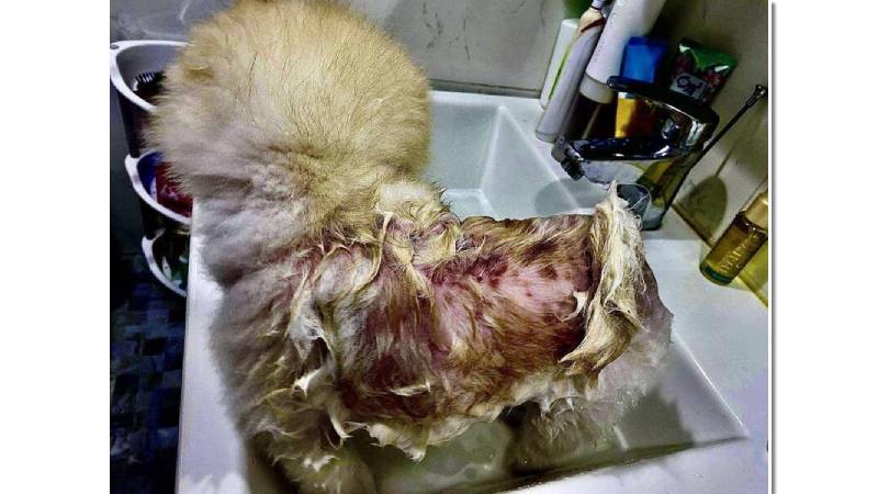▲新北板橋區一隻小狗「牛奶」遭攻擊性犬隻「阿根廷杜告犬」攻擊咬傷。(新北市動物保護防疫處提供)