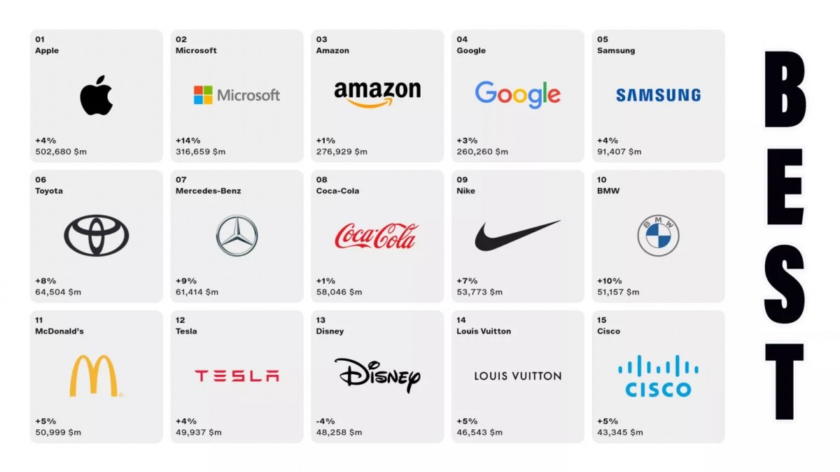 Toyota不只是全球最大的汽車集團,同時也在品牌表現上得到汽車領域的第一。 雖然我們總是說企業越大不代表越好,但是對於這次的全球最佳品牌當中似乎不是如此,看看前五名依序為Apple蘋果、Microsoft微軟、Amazon、Google谷歌、Sumsumg三星,每一個都是超大集團,而第六名的Toyota同樣也是全球最大汽車集團,隨後是第七名到第九名依序為Mercedes-Benz賓士、可口可樂、Nike,以及第十名的BMW,而電動車大廠特斯拉Tesla也在榜單上,名列第12名,還贏過了精品品牌Louis Vuitton。