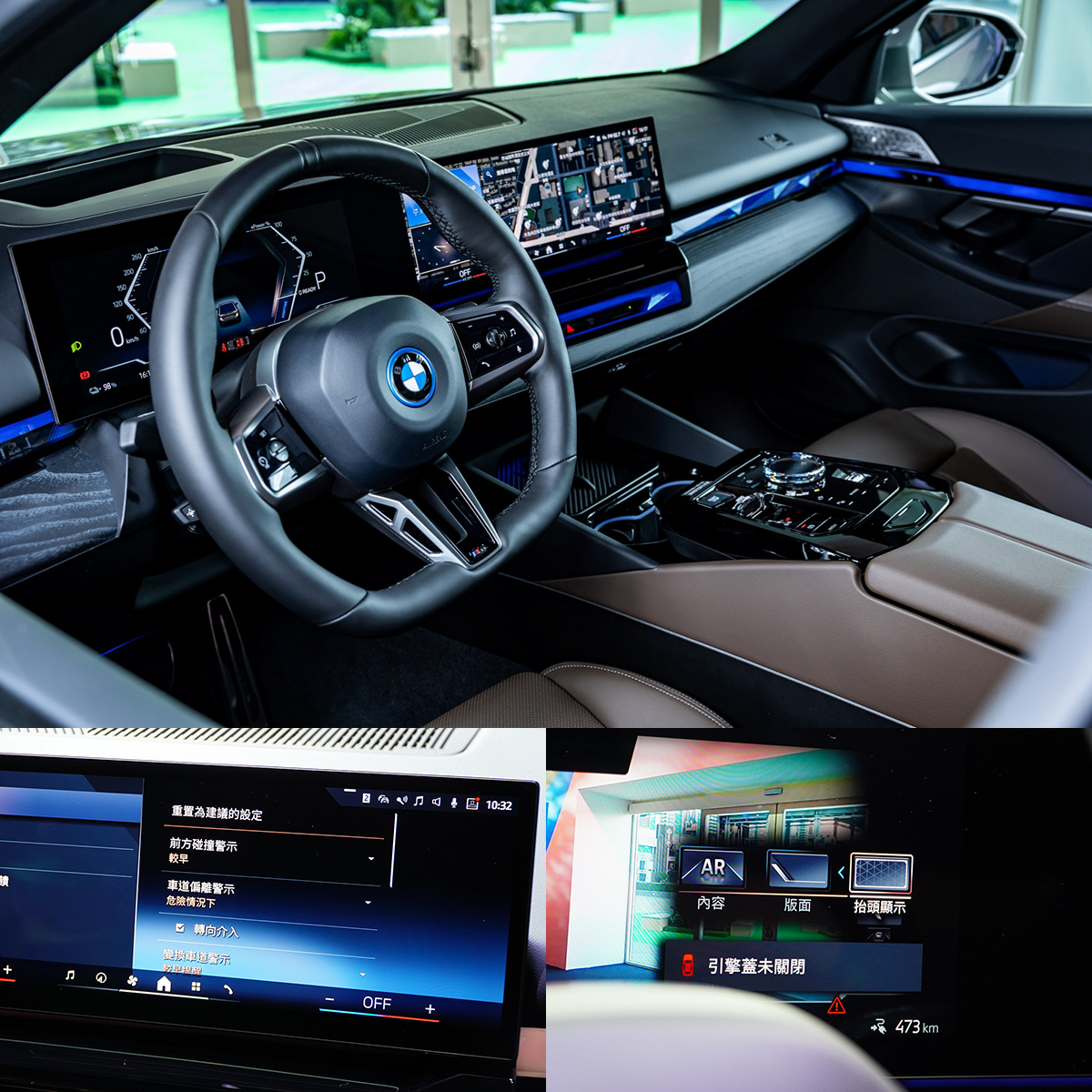 進入座艙,全新世代BMW 5系列以旗艦級的座艙設計思維,結合由12.3吋虛擬數位儀錶搭配14.9吋中控觸控螢幕所構成的全新懸浮式曲面螢幕、環抱車室的BMW座艙環繞光幕,以高度的數位化思維加入頂級水晶中控套件、隱藏式冷氣出風口設計與大幅減少的實體按鍵,構築出了BMW引以為傲的駕駛者導向車艙設計,特別是全新BMW Operating System 8.5更以Zero-layer概念導入全新QuickSelect快捷選單,讓駕駛能以更直覺的圖像式邏輯進行操作,而BMW i5列為標準配備的AR擴增實境導航功能、廣受消費者好評的車況抬頭顯示器、遠端車輛啟動、手勢控制功能、最高15W充電功率的手機無線充電裝置與BMW手機數位鑰匙2.0,更將頂尖科技完美淬鍊於座艙之中。