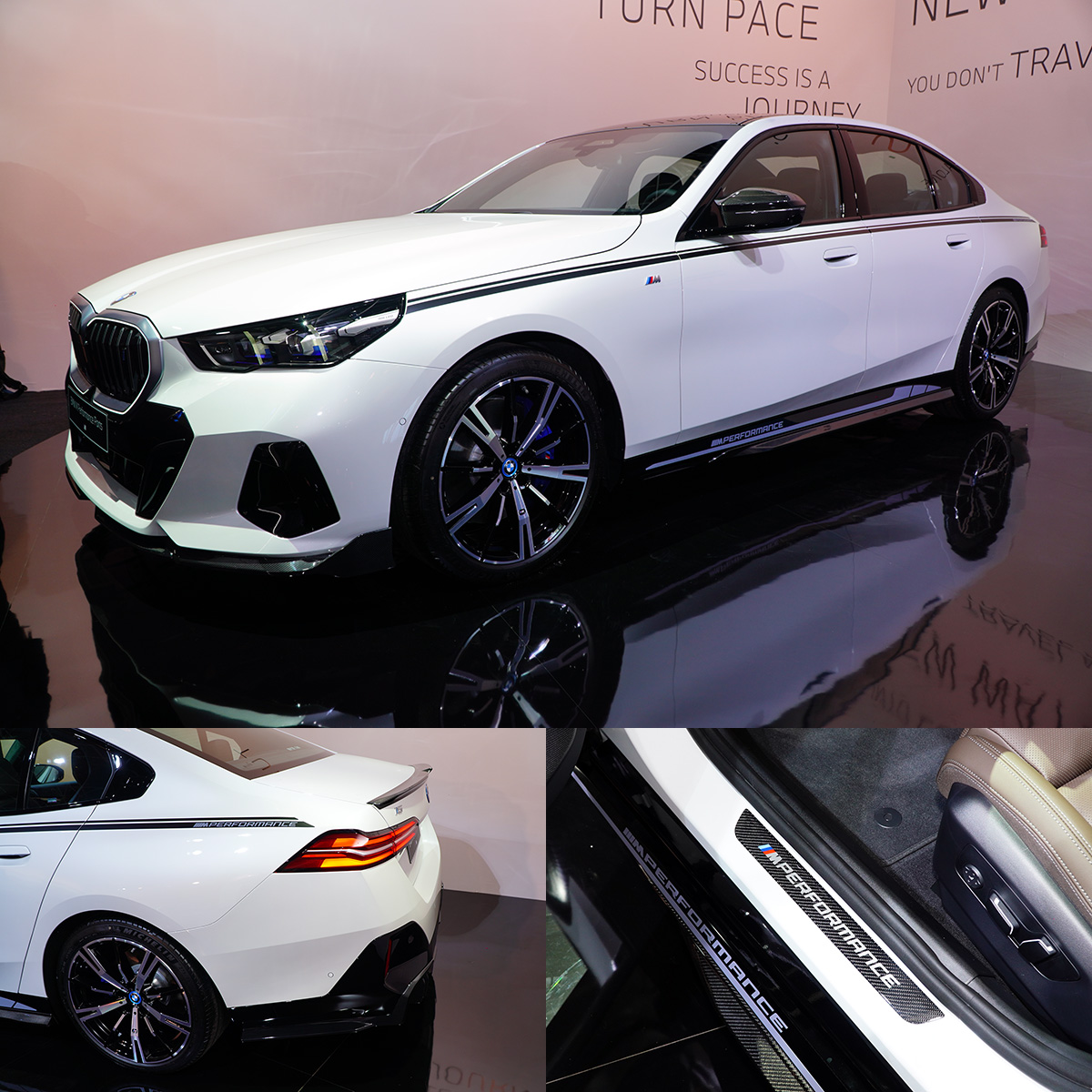 同時,全新世代5系列專屬BMW M Performance套件也同步引進,全新世代BMW 5系列專屬M Performance碳纖維前定風翼搭配M Performance碳纖維側裙下飾板、M Performance碳纖維後擾流尾翼與M Performance碳纖維後下擴散器,不僅擁有百分百與車身緊密貼合的高品質演出,更讓5系列大幅強化空氣力學表現並增加高速行駛時的下壓力表現與車身穩定性;至於專屬的M Performance車身、側裙彩貼、M Performance芳綸天線飾蓋與M Performance碳纖維迎賓門檻飾板,更讓全新世代5系列完美彰顯個性化特質,同時也讓車身比例在視覺上更顯修長俐落,大幅增添動感且運動化的帥氣外型。